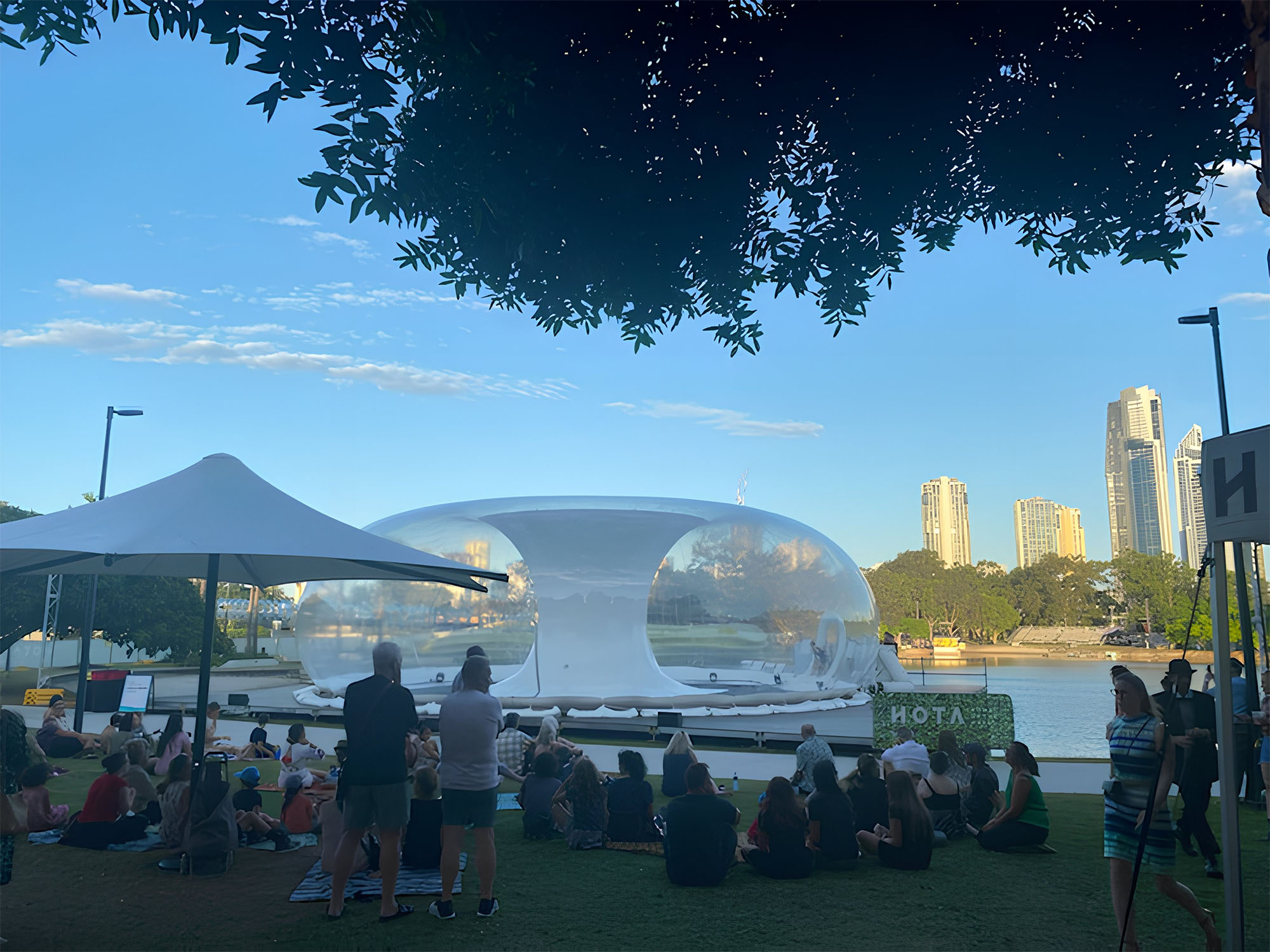 Making installation easy was important for the HOTA outdoor venue. Because the inflatable stage was lightweight, the 16-metre structure could be moved easily and set up quickly on a raised platform. The team carefully managed the air pressure to keep the dome steady while acrobats performed energetic stunts inside.