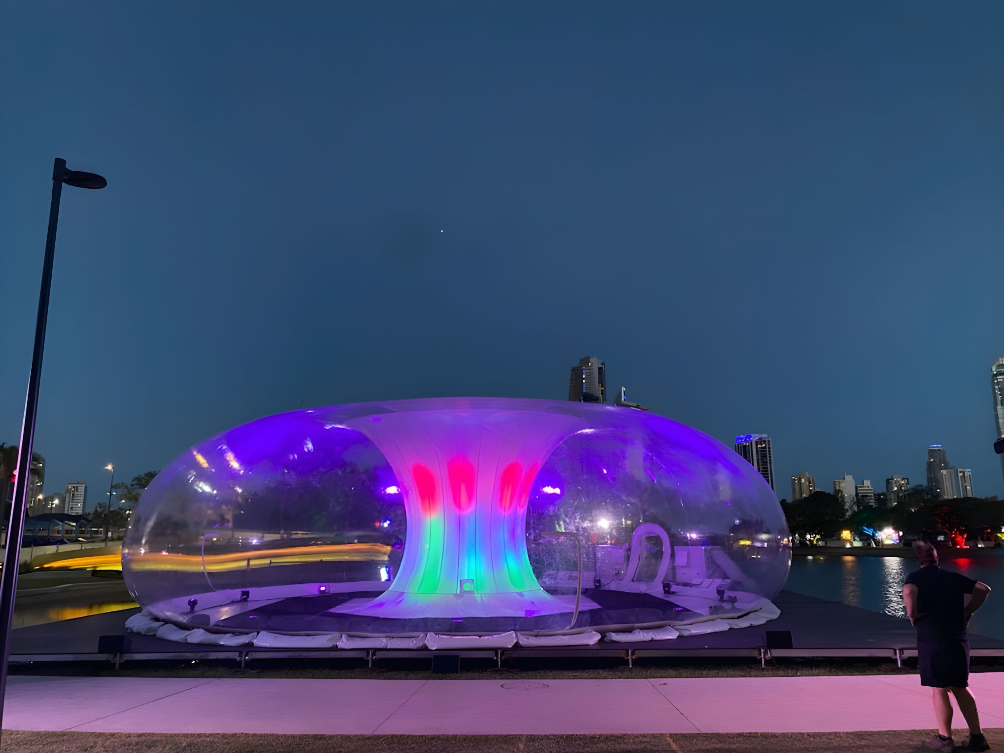 The custom 16-metre torus stage let Circa perform their acrobatic shows for live audiences on the Gold Coast. The inflatable stage worked as a protective bubble, meeting all 2020 COVID safety rules and standing out as a striking centerpiece. This creative solution helped keep the arts available during a challenging time.