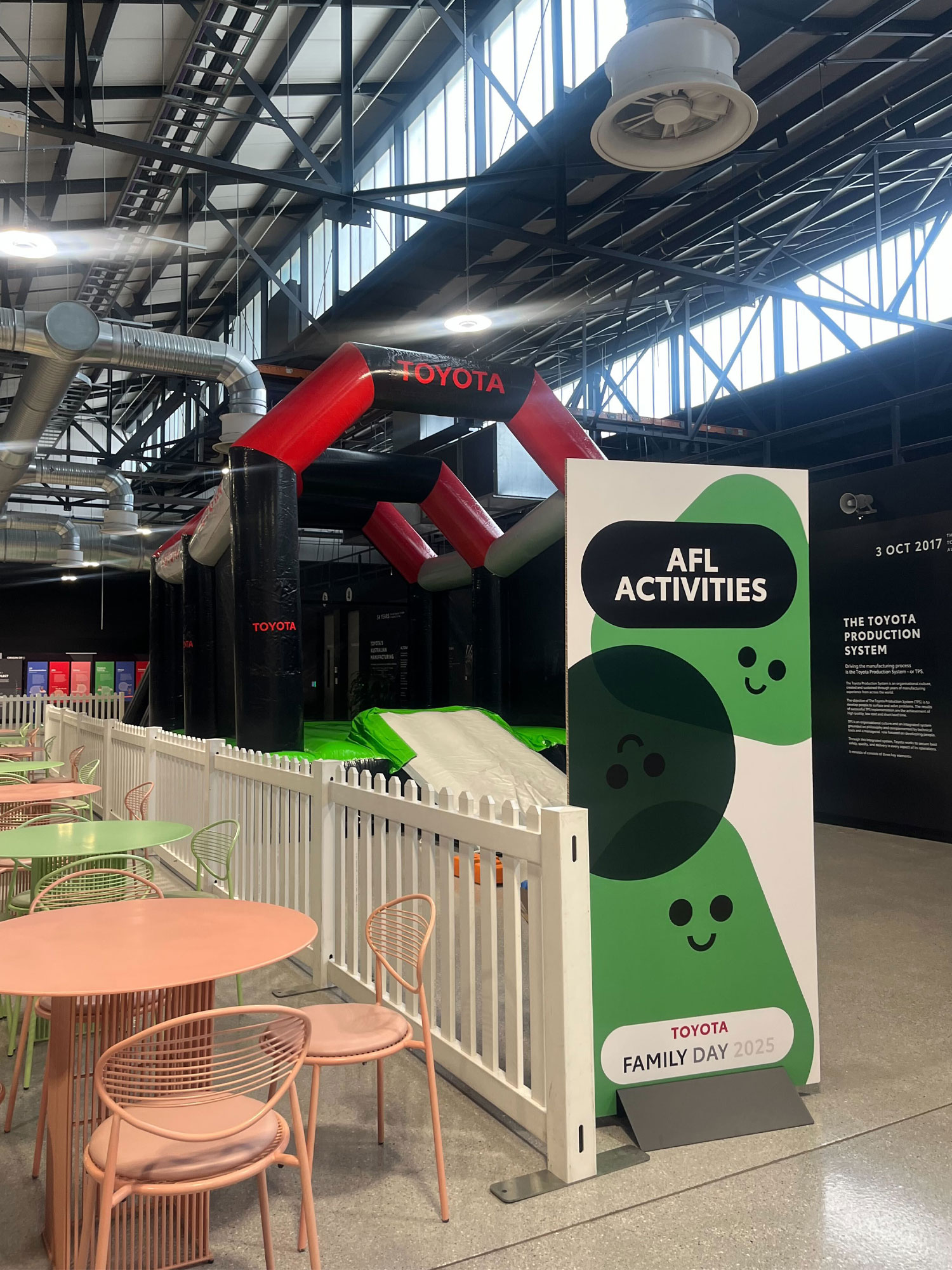 The custom-branded AFL mark training sports inflatable was a major success at the Toyota Family Day. It became a central attraction, drawing in crowds and encouraging active participation. The inflatable game provided a tangible and enjoyable experience that positively and memorably reinforced Toyota’s connection to the AFL.